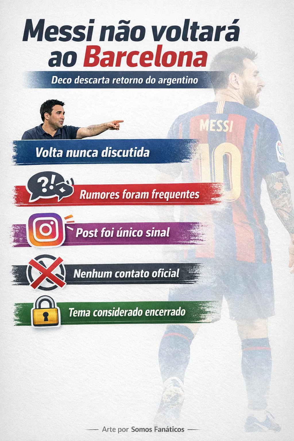 Por fim, Deco explicou que a única demonstração de vontade de retornar ao Barcelona que Messi teve foi uma publicação nas redes sociais. Fora isso, não houve qualquer contato nem do clube e nem do craque argentino.