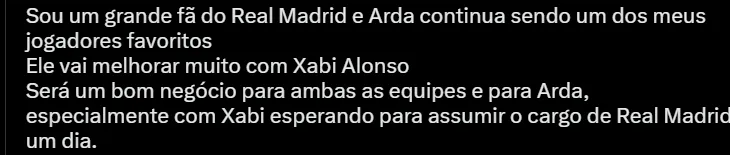 Uma das solicitações de Xabi é o jovem Arda Guler, turco de apenas 19 anos de idade. O meia fez grande Euro vestindo a camisa da Turquia e chamou atenção do espanhol. O Real Madrid, ciente, não tem interesse em negócio.