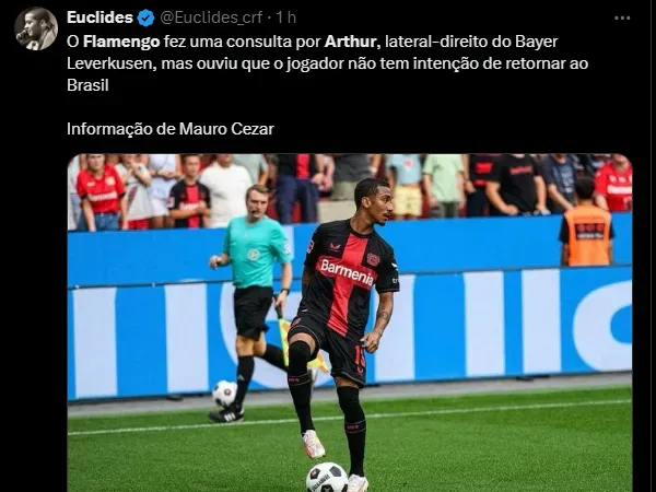 O Bayer Leverkusen foi surpreendido com a sondagem do Flamengo pelo lateral-direito Arthur. A equipe da Gávea busca uma reposição antes de selar a venda de Wesley. A informação é do Mauro Cezar.