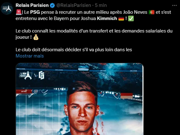 O time francês deseja avançar pela reformulação do elenco e montar uma equipe mais equilibrada. Desta forma, o clube fez consulta por Joshua Kimmich e ouviu dos bávaros que aceitam vender.