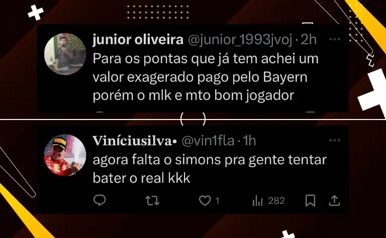 O negócio foi fechado em € 53 milhões, com um adicional de € 6 milhões em bônus, totalizando € 59 milhões. Essa quantia coloca Olise atrás apenas de Harry Kane (€ 95 milhões), Lucas Hernández (€ 80 milhões) e Matthijs de Ligt (€ 67 milhões) na lista de transferências mais caras do Bayern.