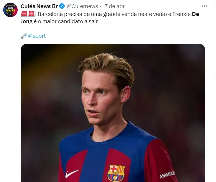 Antes mesmo de Bernardo Silva, a diretoria cúle tem o desejo de vender De Jong. O entendimento é que ele é um jogador acima da média, mas a necessidade de fazer receita fala mais alto no momento.