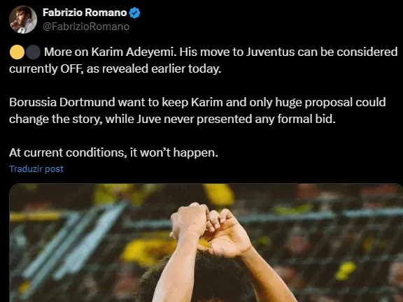 O comunicador sinaliza: “O Borussia Dortmund quer manter Karim e apenas uma grande proposta poderia mudar a história, enquanto a Juve nunca apresentou nenhuma oferta formal”, disse.