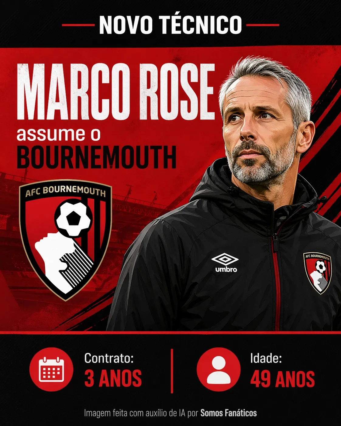 O Bournemouth, da Inglaterra, time de Rayan, ex-Vasco, anunciou nesta segunda-feira (20), o alemão Marco Rose como novo técnico para substituir Andoni Iraola, segundo o portal GE.