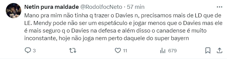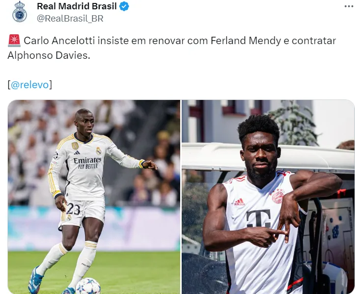 A renovação contratual de Mendy é a segunda pedida de Carlo Ancelotti, segundo informações do jornal. O plano do italiano é poder ter Mendy e Davies à disposição na próxima temporada.