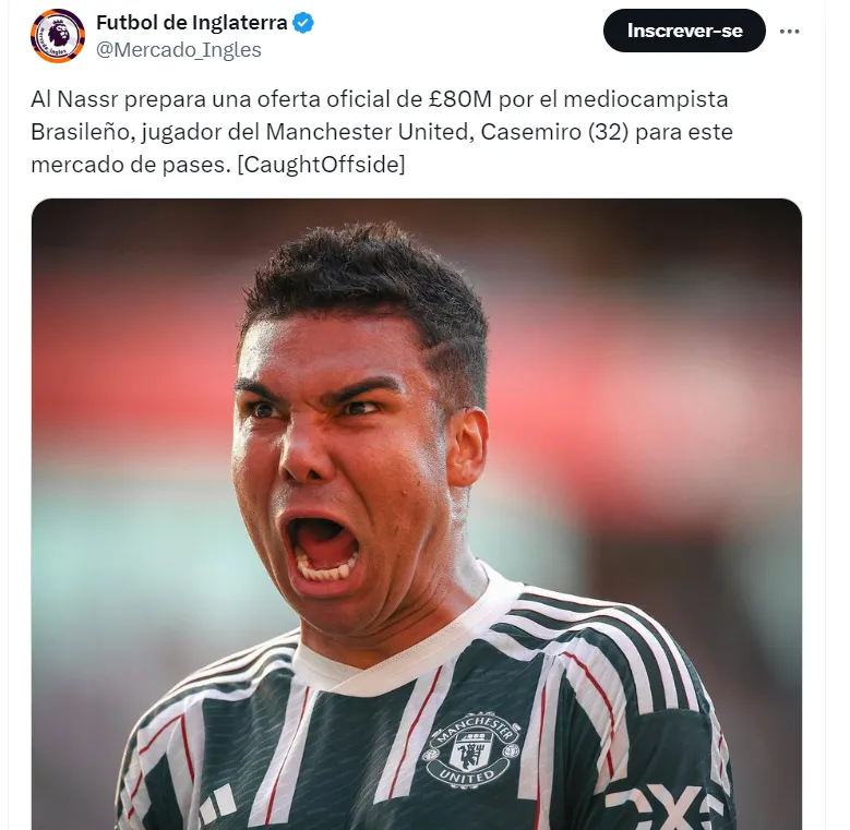 O Manchester United está aberto a vender Casemiro e, por esse valor, não vai dificultar nenhum movimento do Al-Nassr. O volante brasileiro terminou a temporada em baixa e entende que o melhor caminho seria deixar a Europa.