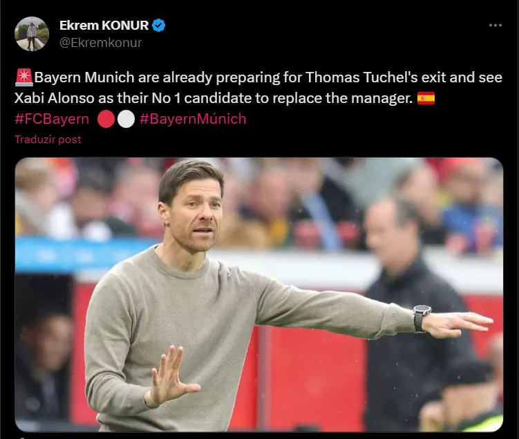 Conforme a fonte, Xabi é o nome favorito para os Bávaros. Apesar de já ter iniciado a temporada e estando na segunda colocação da tabela, o Tuchel balança no cargo e pode deixar o time em breve.