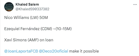 Desta forma, Xavi, Deco e companhia começam a montar a lista de alvos. Um dos nomes que aparece como uma das prioridades, é o de Xavi Simons, que pertence ao PSG.