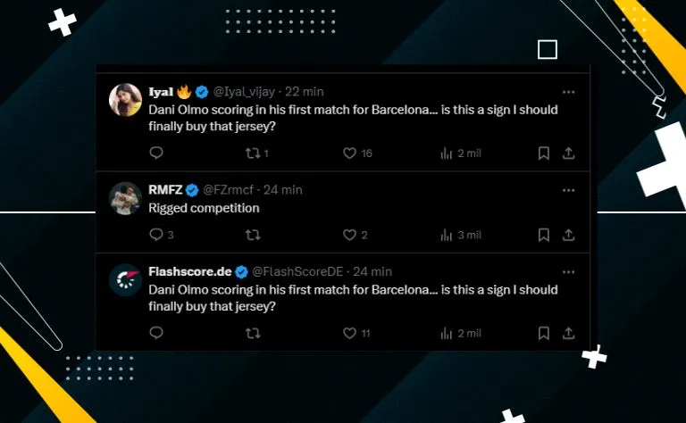 Dani Olmo entrou no lugar de Ferran Torres no duelo de hoje. A tendência é que ele comece a ser titular de Flick ao lado de Yamal, com quem venceu a última edição da Eurocopa.