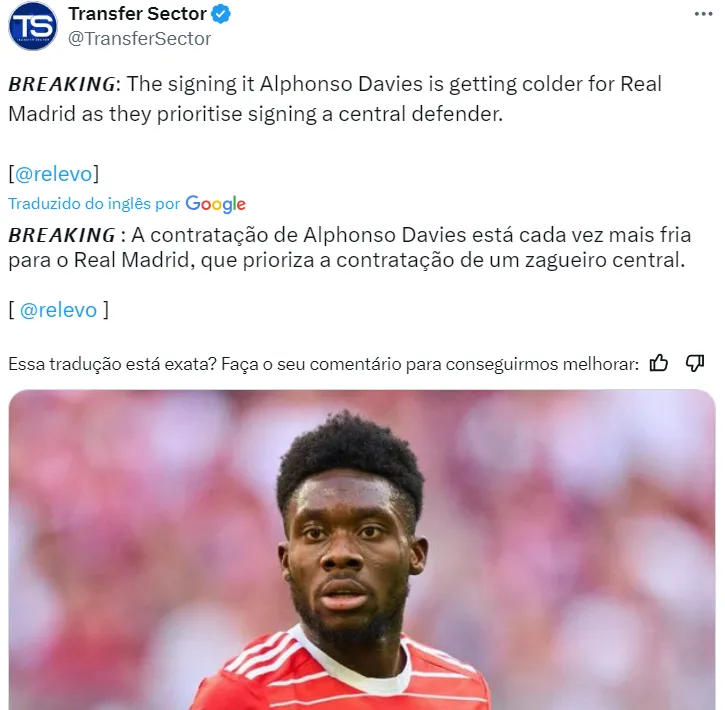 O Real Madrid ainda está interessado na contratação do lateral-esquerdo Davies, do Bayern de Munique, visando a próxima temporada. O mesmo vale para o canadense, que deseja jogar em Madri.