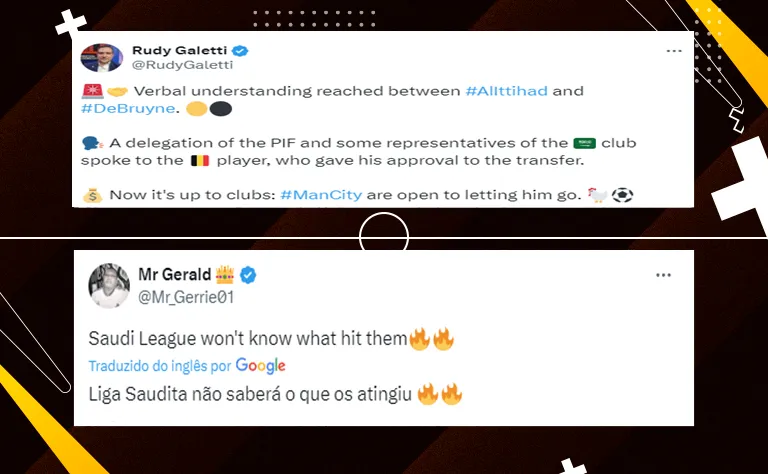Isso porque, de acordo com o jornalista Rudy Galetti, De Bruyne chegou a um acordo verbal para defender o Al-Ittihad, um dos principais clubes da Arábia Saudita.