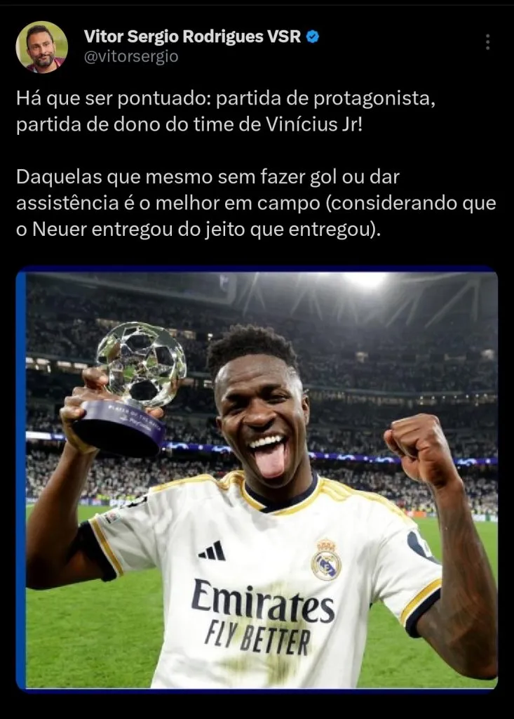 Vinícius fez a defesa do adversária ter pesadelos com a atuação apresentada nesta quarta. Apesar de não ter marcado gols neste jogo, o camisa sete foi eleito o melhor jogador da partida pela UEFA.