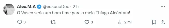 Porém, a prioridade do jogador, neste momento, parece ser outra. Isso porque, conforme revelado por Fabrizio Romano, Thiago Alcântara trabalha com outros planos para o futuro.