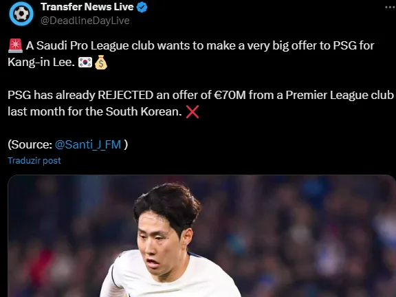A oferta que o dono da PSG recebeu de um clube da Premier League pelo coreano Kang-in Lee não convenceu. Agora, a informação é de que um time da Arábia Saudita prepara valores irrecusáveis para avançar.