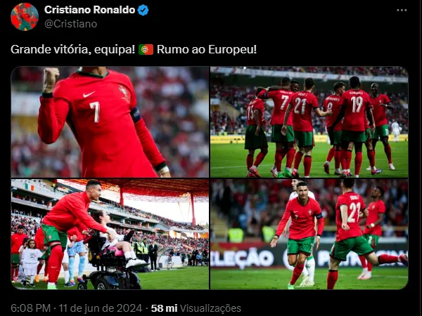 Cristiano Ronaldo é um espetáculo à parte quando está em campo. O gajo anotou dois gols na vitória de Portugal pelo placar de 3 a 0 no amistoso diante da Irlanda; João Félix completou o placar.
