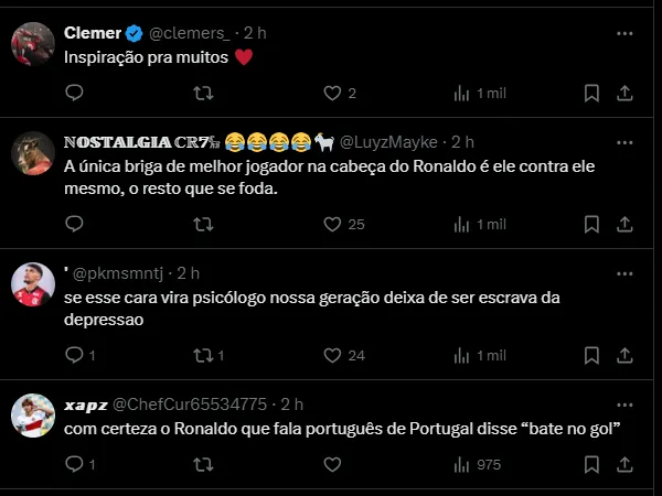 O dublador Gustavo Machado atendeu ao pedido dos internautas e fez a leitura labial das palavras ditas pelo astro do Al-Nassr, da Arábia Saudita. Muita confiança do jogador.