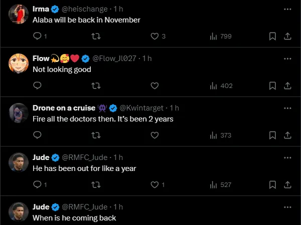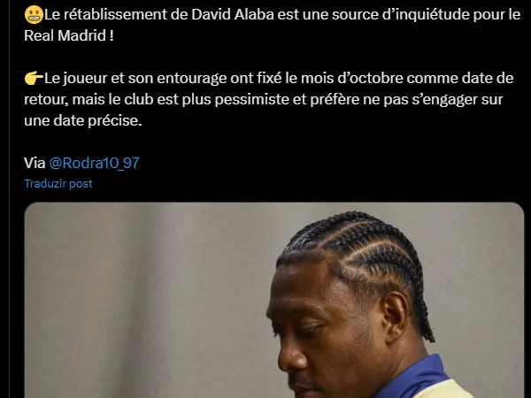 Alaba sofreu a lesão em dezembro e desde então está fora do time do Real Madrid. Ele não participou da reta final da equipe na La Liga e tampouco da final da Champions League.