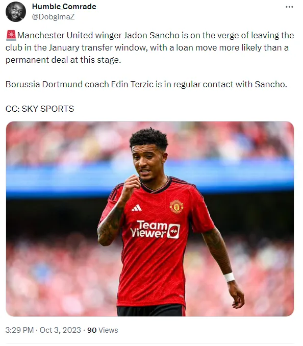 Entre esses problemas, destaca-se o desempenho de Jadon Sancho, o qual chegou ao Manchester United com grandes expectativas, mas até o momento não conseguiu repetir o sucesso que teve no Borussia Dortmund.