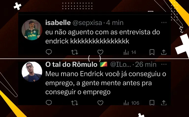 Essa não é a primeira vez que o jovem jogador fala sobre atletas do passado. Mostrando boas referências no esporte, Endrick já havia afirmado em entrevista que gostaria de ter jogado com Ruud Gullit, holandês que se aposentou em 1998.