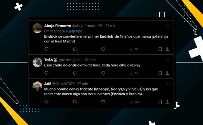 O Real Madrid venceu o Valladolid pelo placar de 3 a 0, com direito a gol de Endrick na estreia oficial dele no clube espanhol. Agora, ele soma dois tentos em dois jogos no Santiago Bernabéu.