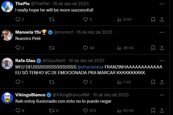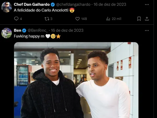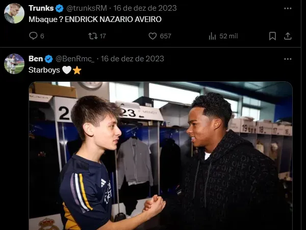 As duas contratações do Real Madrid para a próxima temporada são Endrick e Mbappé. O jovem formado nas categorias de base do Palmeiras está empolgado com o novo clube.