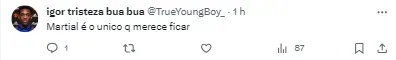 Isso porque, segundo informações do jornal The Sun, o trio formado por Antony, Jadon Sancho e Anthony Martial podem sair da equipe no mercado de inverno como parte da mudança provocada pela iminente chegada do empresário britânico Sir Jim Ratcliffe, que deve assumir o controle total das operações de futebol do clube, ainda segundo informações publicadas pelo jornal inglês.