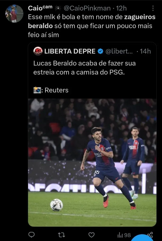 Comprado pelo Paris Saint-Germain por valores na casa dos 20 milhões de euros (algo em torno de R$ 107 milhões na cotação atual), Beraldo caiu rapidamente no coração das arquibancadas.