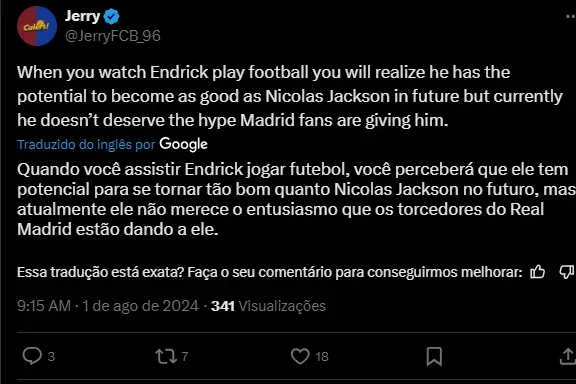 A estreia de Endrick no Real Madrid é assunto entre torcedores do Barcelona – isso mesmo. Os rivais blaugranas do clube merengue estavam de olho nos primeiros passos do camisa 16 na Europa.
