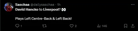 Dávid Hancke e Arne Slot trabalharam juntos quando o treinador neerlandês esteve no comando do Feyenoord. Dessa maneira, uma possibilidade de reformular a parceria com o treinador do Liverpool pode ser um atrativo para o eslovaco.