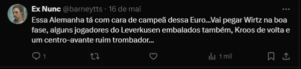 Logo, a Eurocopa 2024 começa no próximo dia 14 de junho, a partir das 16h (horário de Brasília). A primeira partida acontece entre Alemanha e Escócia. No dia seguinte, Hungria e Suíça seguem os confrontos do Grupo A.