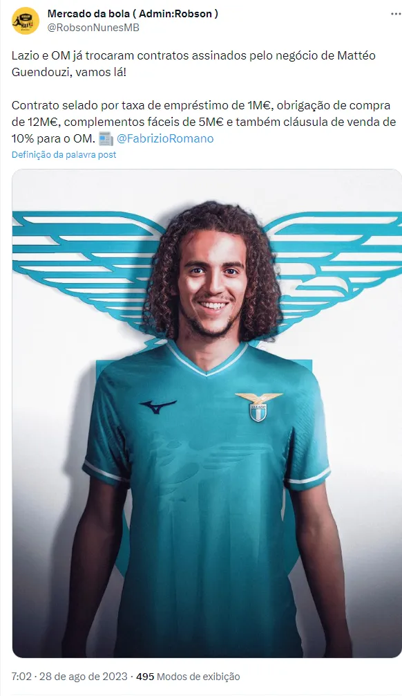 Com o contrato já assinado, Guendouzi agora defenderá as cores do clube italiano. Vale lembrar que o valor atual de mercado do atleta é de 25 milhões de euros, segundo o ‘Transfermarkt’.