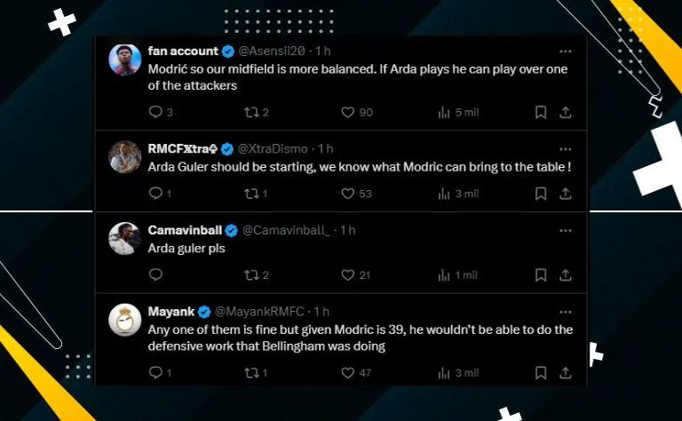A reportagem repercute o tempo que o camisa 5 vai ficar fora do time titular do técnico Carlo Ancelotti. Fanáticos por Futebol escolhem o substituto do craque: Arda Güller ou Modric?