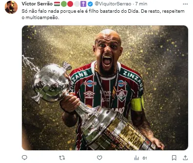 “Mbappé é um bobo. Para mim é um bobo. São três gols na final, a Argentina saiu campeão (da Copa do Mundo) e Messi saiu melhor do mundo. Tem muito o que aprender”, disse o jogador do Fluminense.