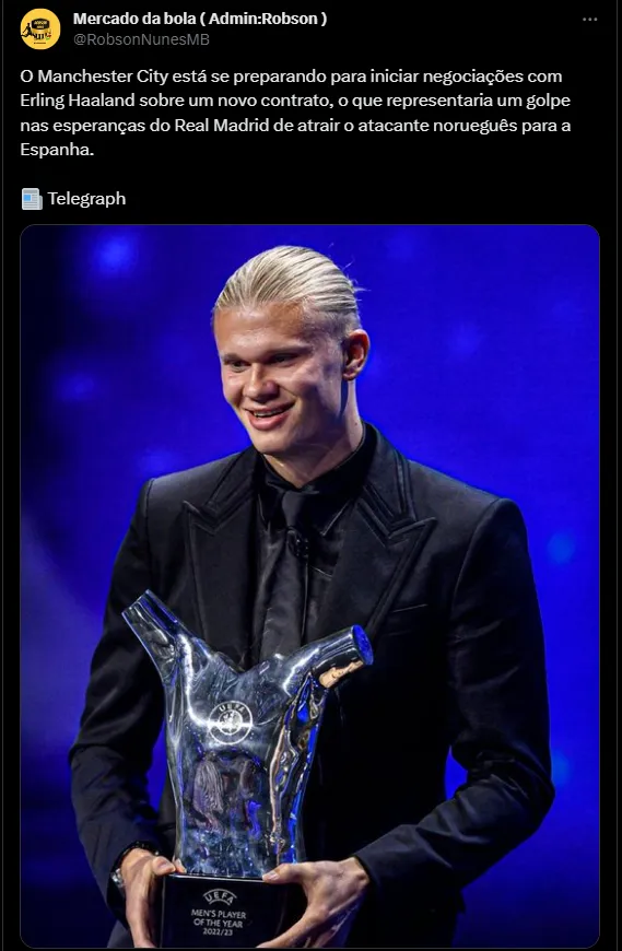Por isso, a ideia do clube inglês é ampliar o vínculo para afastar possíveis investidas de outras equipes, principalmente o Real Madrid, que sonha em ter o norueguês.