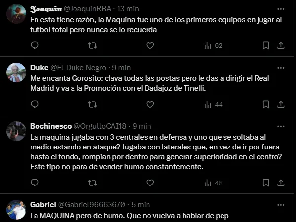 “Eles querem fazer com que os torcedores acreditem que seja algo novo, mas não é”, finalizou Pipo Gorosito sobre o que pensa do trabalho de Guardiola no Manchester City.
