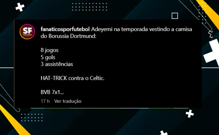 O Borussia Dortmund surpreendeu ao aplicar uma sonora goleada de 7 a 1 no Celtic, na Alemanha. Adeyemi marcou um Hat-Trick e chamou atenção de nada mais nada menos do que o técnico do Manchester City.