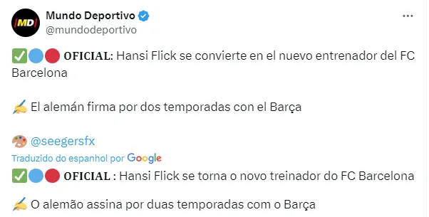O Barcelona terá Hansi Flick como treinador para a próxima temporada do futebol europeu. Marcado pela grande passagem no Bayern de Munique, o alemão estava livre no mercado da bola.