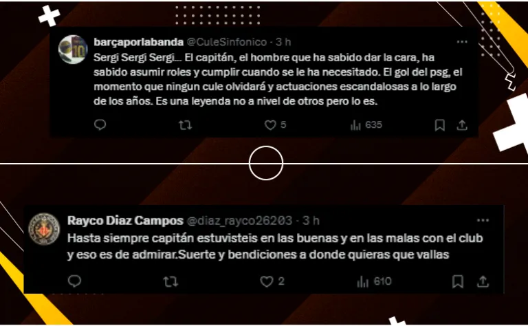 “Sergi Roberto oficializou sua despedida do clube que o viu crescer, o FC Barcelona. O homem que até agora foi o primeiro capitão do time principal esgotou seu contrato no final da temporada passada e, com um vídeo emocionante em suas redes sociais, se despediu de sua casa”, comunicou o Barcelona em suas redes sociais.