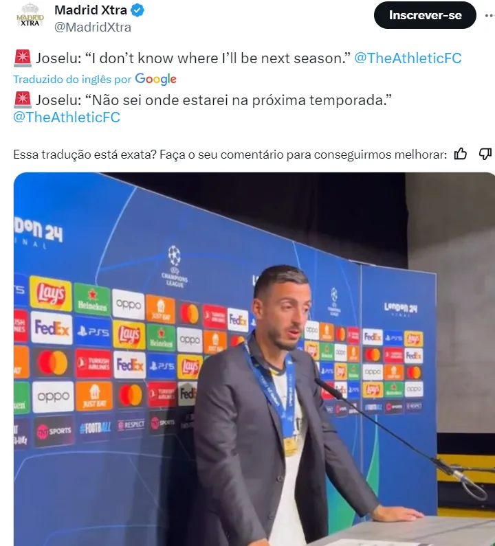 “Não sei onde estarei na próxima temporada”, disse Joselu, após a conquista da Champions League. Contratado sob empréstimo, o atacante foi superimportante na conquista merengue, especialmente no jogo contra o Bayern.