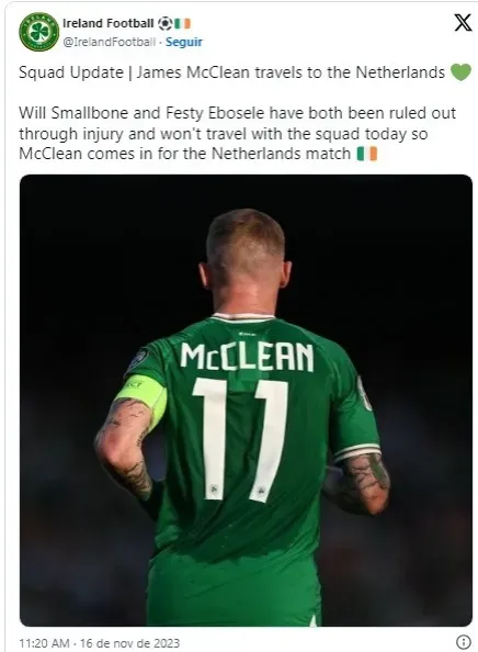 Do lado irlandês, o treinador Stephen Kenny enfrenta algumas incertezas para o confronto. Os jogadores Ferguson, Chiedozie Ogbene e Jamie McGrath são dúvidas, enquanto Jayson Molumby pode ganhar uma oportunidade no meio-campo.