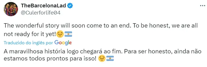 Embora tenha anunciado que nunca mais voltará ao Barça, Messi não tem planos de encerrar a carreira tão cedo assim, mas sente que o momento de parar está mais perto do que nunca.