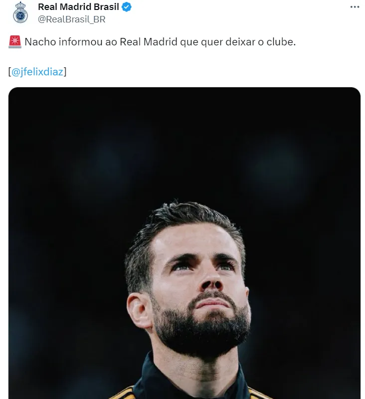 Isso porque, segundo informações de José Félix Díaz, o defensor Nacho, que atua como zagueiro e também como lateral-direito, decidiu que vai deixar o time de Carlo Ancelotti.