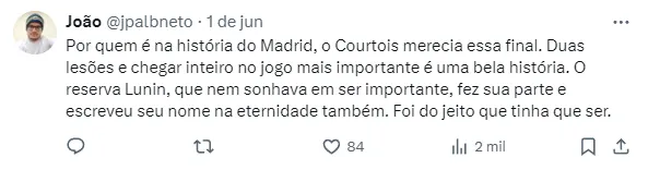 No início desta semana, inclusive, parte da mídia espanhola já havia noticiado que Lunin estaria ‘decepcionado’ com Ancelotti por não ter entrado em campo na decisão da Champions.