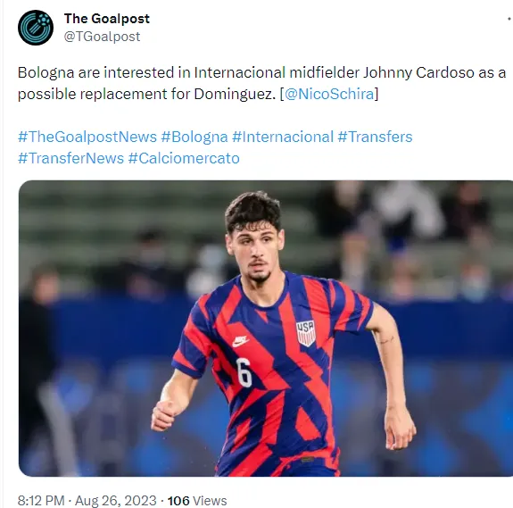 De acordo com a fonte, Johnny, de 21 anos está sendo cortejado pelo Bologna, da Itália, e já atraiu o interesse do clube italiano. O Bologna espera que o jogador possa substituir Dominguez, que está de saída do time.