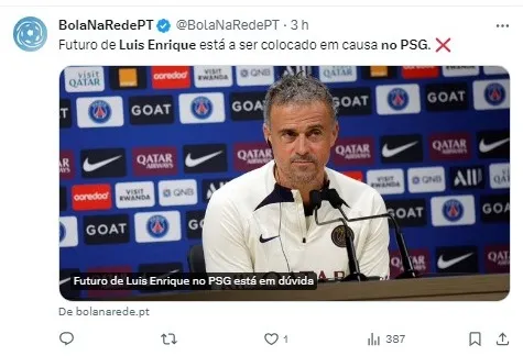 O descontentamento dos jogadores, conforme relatado pelo “L’Équipe”, coloca em dúvida a continuidade de Luis Enrique no comando da equipe.