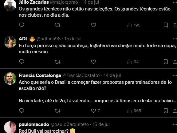 “Seria a maior perda de prestígio da história do futebol se dissessem: ‘Vou abrir uma exceção’”, acrescentou o profissional em relação a possibilidade de assumir o projeto agora.