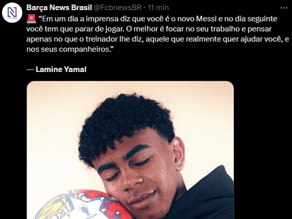 Às vésperas de estrear na Eurocopa 2024, Yamal conversou com a imprensa e citou o diferencial da equipe Azul e Grená para poder abandonar os vícios de “peladeiro” para ser um profissional acima da média.