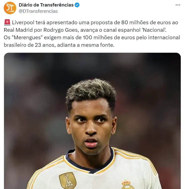 De acordo com relatos do jornal Nacional, da Espanha, o Liverpool, que se prepara para perder Klopp no final da temporada, teria realizado uma grande oferta para contar os serviços do brasileiro Rodrygo, do Real Madrid, visando a próxima temporada.
