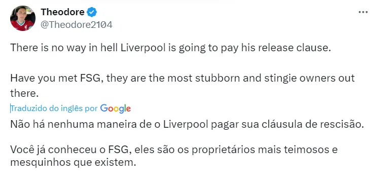 O Liverpool, no entanto, pode enfrentar problemas financeiros na tentativa de avançar pelo jovem. Isso porque, os vermelhos não têm o costume de investir pesado por reforços.