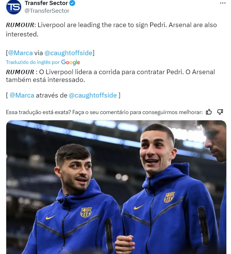 No mercado, o valor próximo do meio-campista espanhol bate na casa de 80 milhões de euros. No entanto, o preço do jovem deve cair ao final da temporada, já que ele entrará em seu último ano de contrato. Por outro lado, a cláusula rescisória de Pedri é de 1 bilhão de euros.